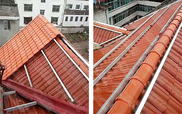 琉璃瓦開裂漏水,加蓋四川合成樹脂瓦案例